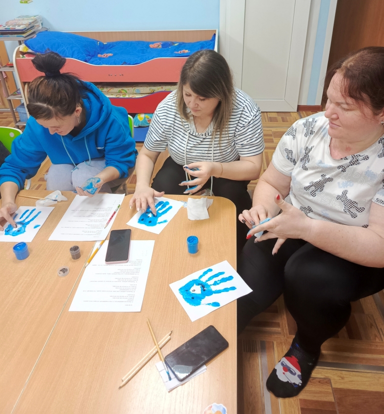 19 декабря на родительском собрании проведен мастер класс кружковой деятельности : "Разноцветные ладошки". Целью данного мастер класса, является заинтересованность родителей к формированию интереса у детей раннего возраста к рисованию нетрадиционными методами. Родителям были озвучены правила безопасности при работе с пальчиковыми красками и показано поэтапное изготовление рисунка ладонью. Родители с большим удовольствием окунулись в мир детства и совместно с педагогом нарисовали осьминога.