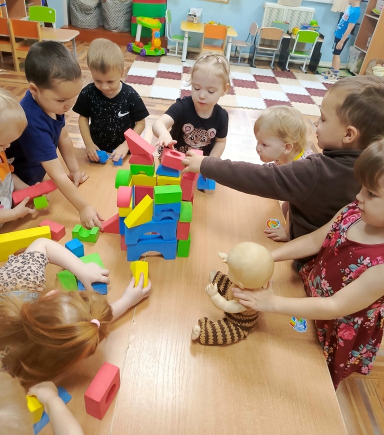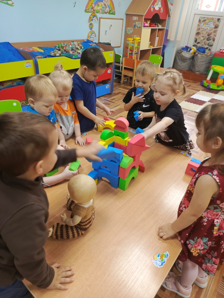 10 ноября в младшую разновозрастную группу пришла кукла Маша, которая рассказала ребятам о том, что злой колдун разрушил ее домик и ей негде жить. Маша попросила ребят помочь ей построить красивый домик. Дети с удовольствием включились в строительство домика для гостьи и у них получился красивый дом. Кукла Маша поблагодарила ребят за помощь и попрощалась, обещая приходить в гости.