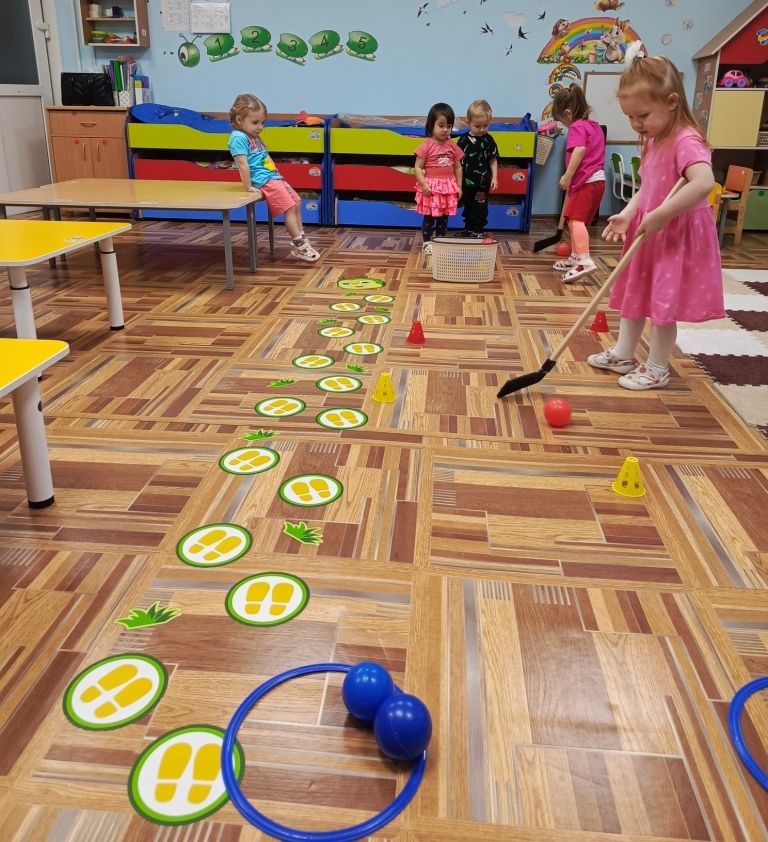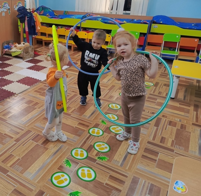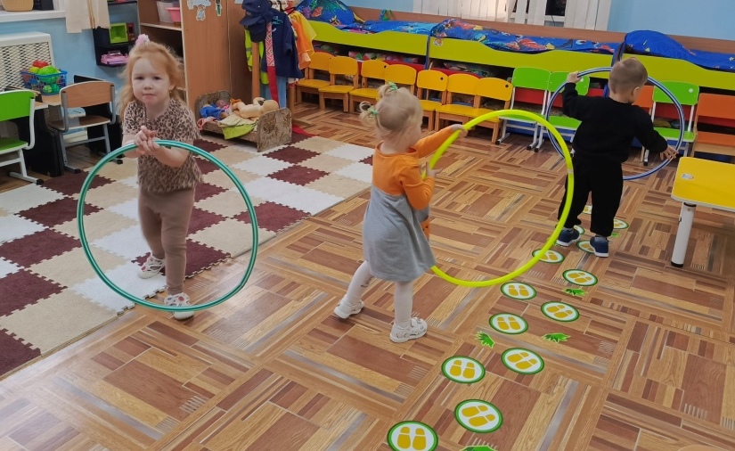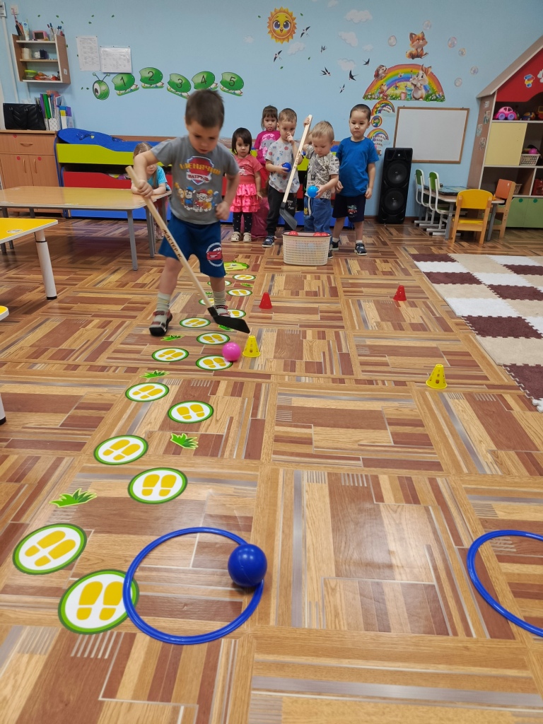 В декабре с ребятами младшей разновозрастной группы,научились играть а подвижные игры "Кошки мышки", "Сова и мыши". Познакомились с обручем, формировали умения детей применять обруч в подвижных играх. Формировали умения прыгать друг за другом по кружкам. Также познакомились с хоккейной клюшкой в подвижной игре "Докати мяч".