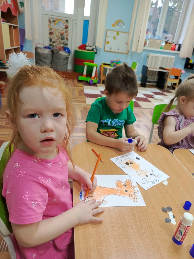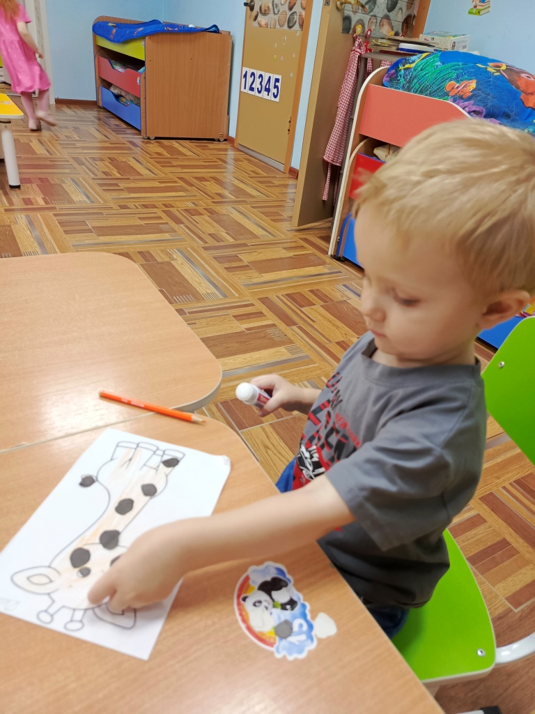С17 по 21 ноября в младшей разновозрастной группе проведена тема недели "Животные жарких стран". С детьми проведена беседа "Кто живёт в зоопарке", прочитана сказка К.Чуковского "Айболит", поиграли в подвижную игру "По тропинке, по дорожки", экспериментирование "Какой бывает песок", раскрасили жирафа и приклеили ему пятнышки, нетрадиционной техникой рисования "Пальчиками", нарисовали жирафу пятнышки.